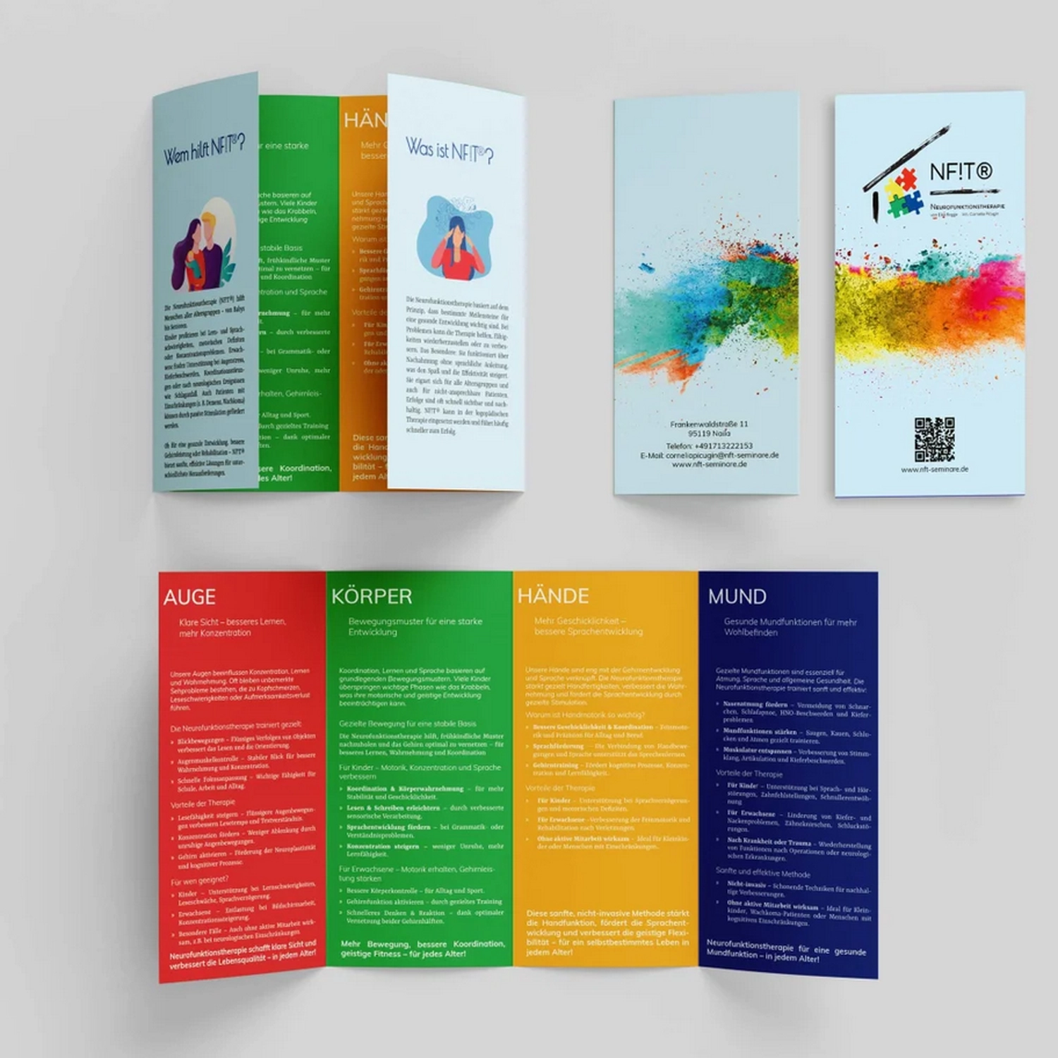 Therapeutinnen und Therapeuten können ab sofort Flyer direkt über unsere Website bestellen und mit ihren eigenen Praxisdaten versehen. Einfach Design auswählen, Informationen einfügen – und schon ist der Flyer druckbereit oder digital einsetzbar – schnell, einfach und professionell.